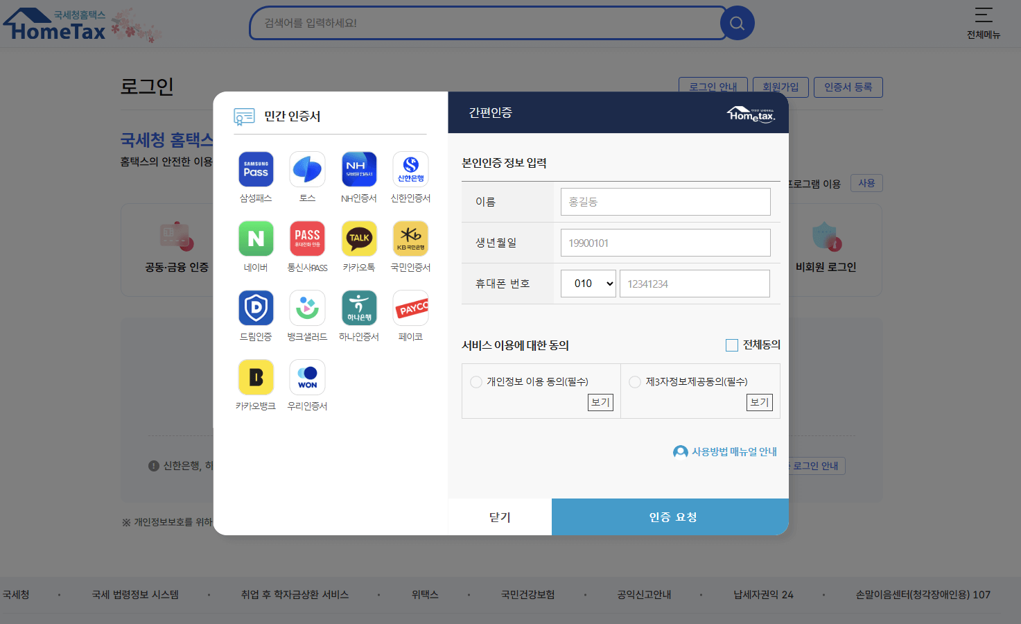 2. 공동/간편 인증 로그인합니다.