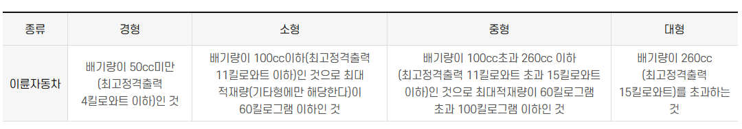 2. 배기량 50cc 미만인 이륜자동차