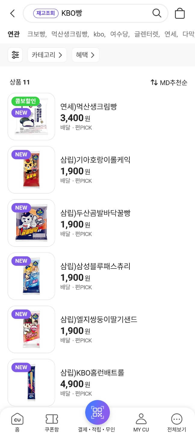 4. 원하는 상품을 클릭하면 내가 있는 위치 주변에 있는 편의점 CU 재고조회를 해줍니다.
